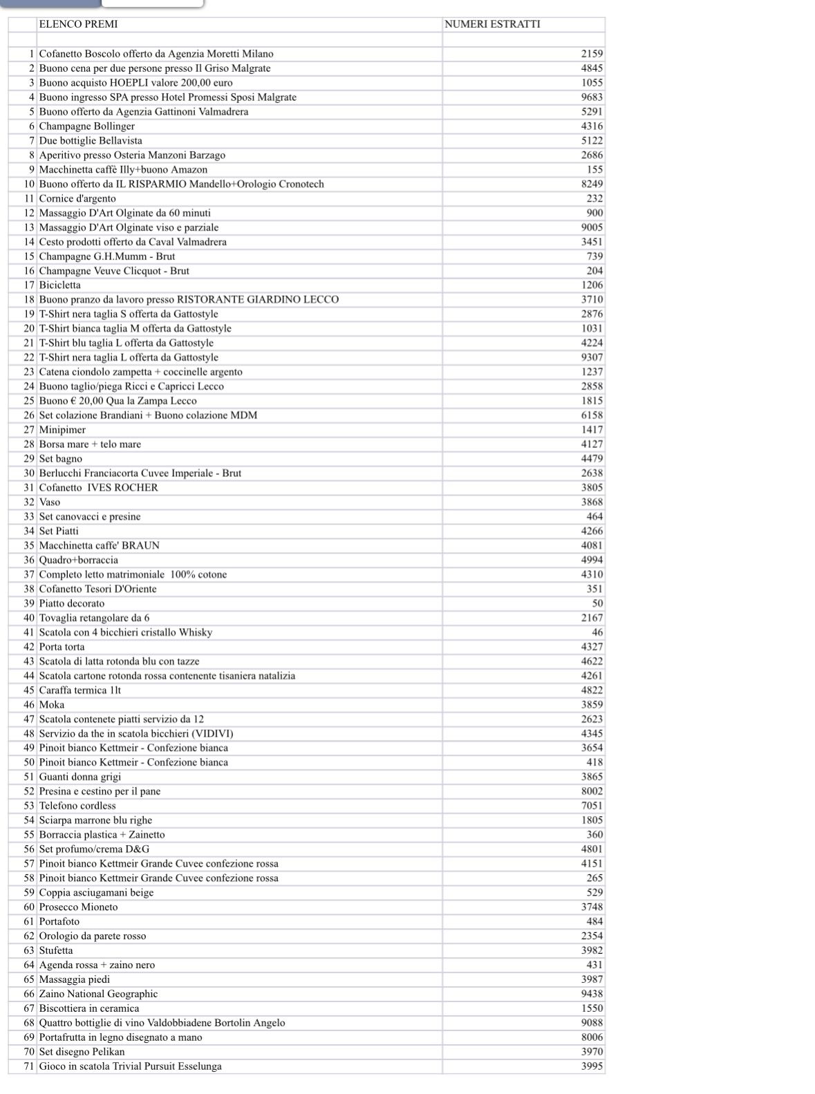 ELENCO PREMI LOTTERIA ZAMPAMICA